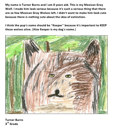 Thanks for getting your pups interested in Mexican gray wolf recovery. The Pup Naming Contest is a great way to engage the next generation in the future of lobos. We’ve made a few pages for our young advocates to use with videos and activities. Below are some links for you to find out more about the efforts to return Mexican wolves to their historic habitat in the Southwest United States and northern Mexico.